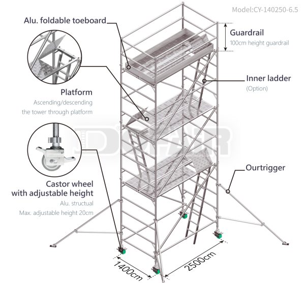 | CY-140250-6.5 | 1.4 x 2.5 m | 6.5 m | ≈ 8.5 m | 4.6 m | 308 kg |